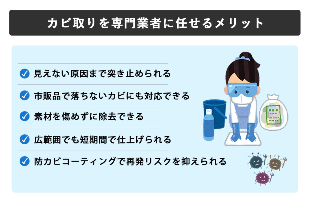 ここでは、カビ取りを専門業者に任せるメリットを解説します。