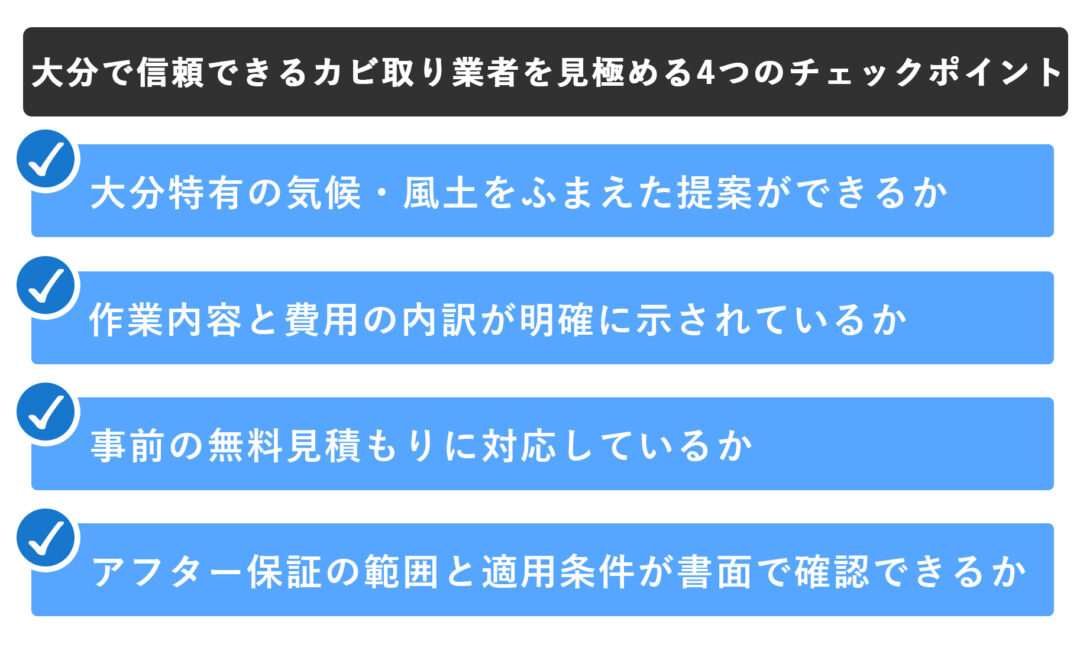 3. 大分で信頼できるカビ取り業者を見極める4つのチェックポイント
