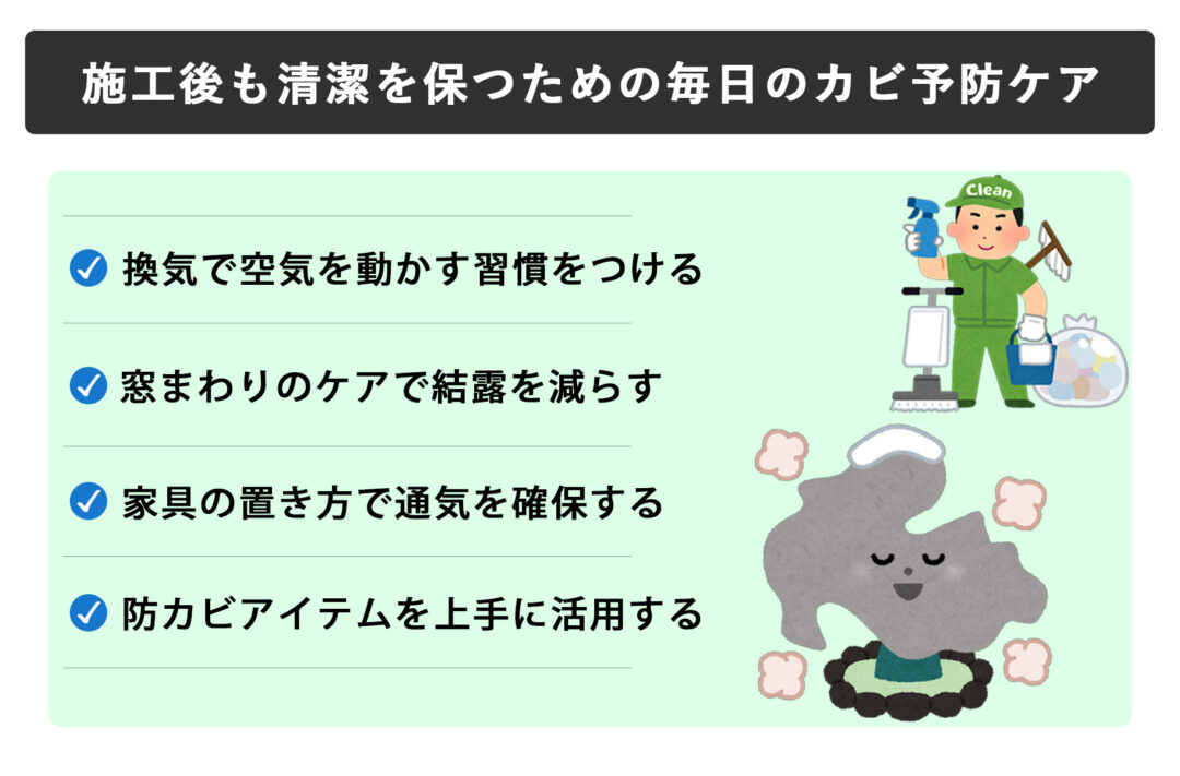 8. 施工後も清潔を保つための毎日のカビ予防ケア
