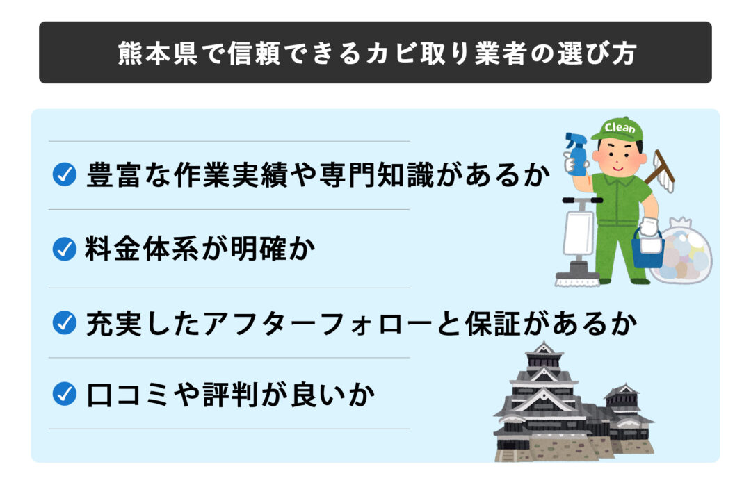 3. 熊本県で信頼できるカビ取り業者の選び方