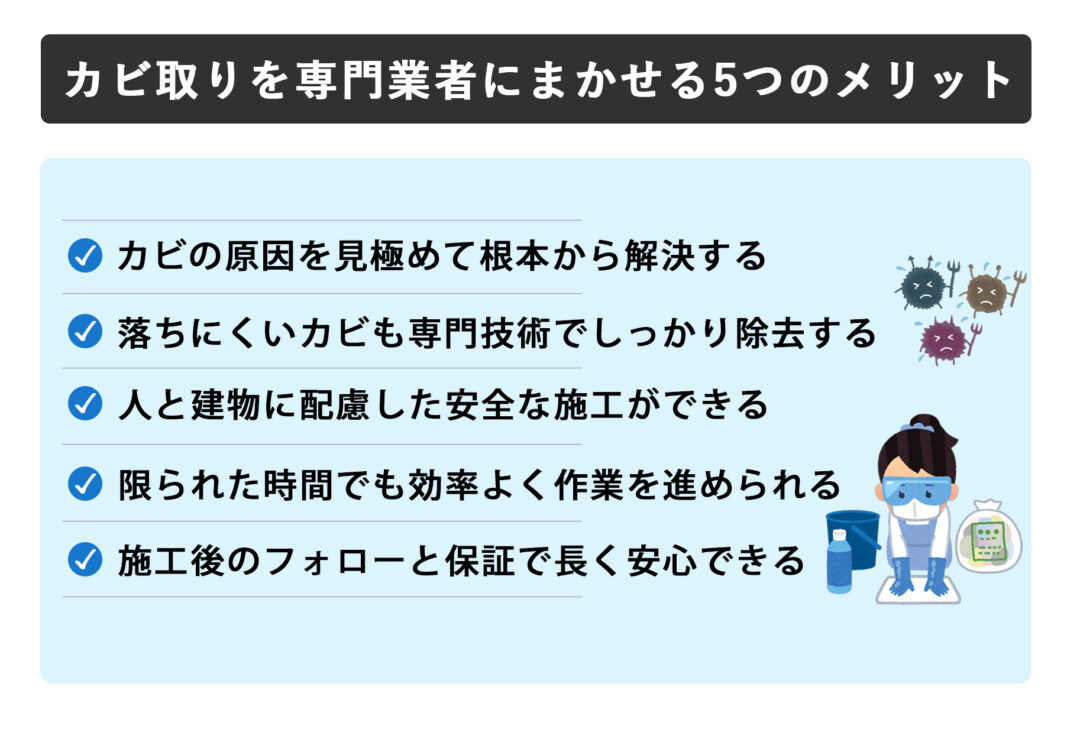 ここでは、専門業者に依頼するメリットを5つに分けて紹介します。