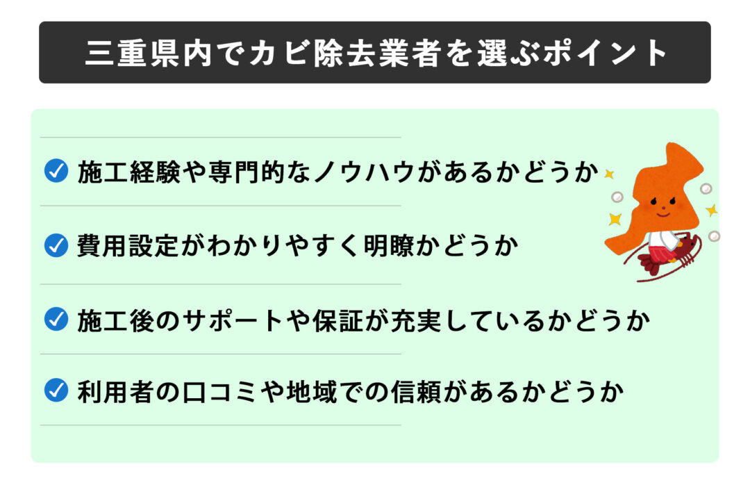 本記事では、信頼できる業者の選び方や、三重県でおすすめのカビ取り業者TOP3を紹介します。