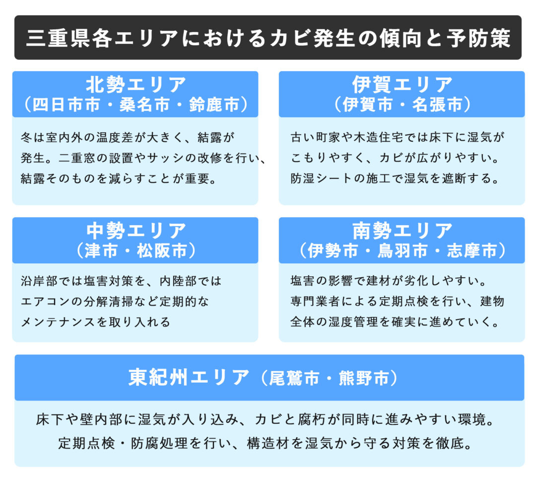 5. 三重県各エリアにおけるカビ発生の傾向と予防策