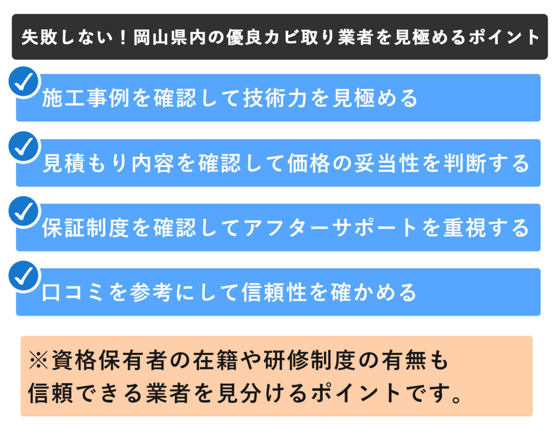 3. 失敗しない!岡山県内の優良カビ取り業者を見極めるポイント