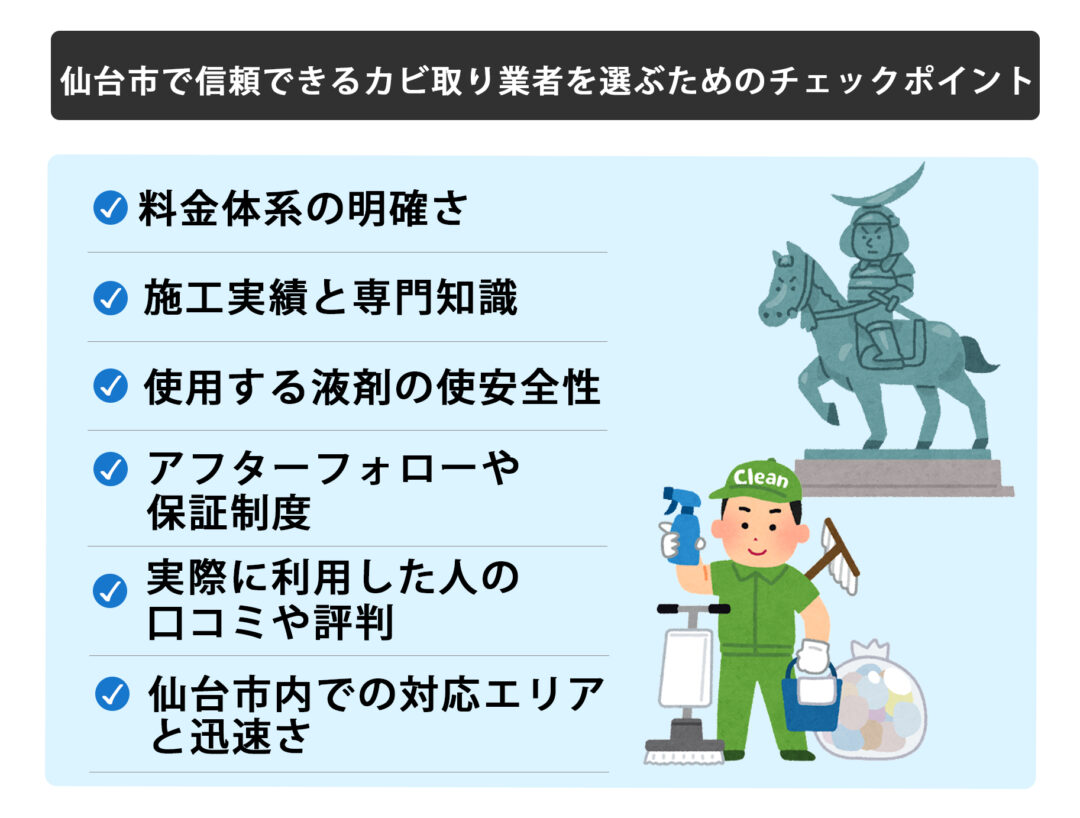 1. 仙台市で信頼できるカビ取り業者を選ぶためのチェックポイント