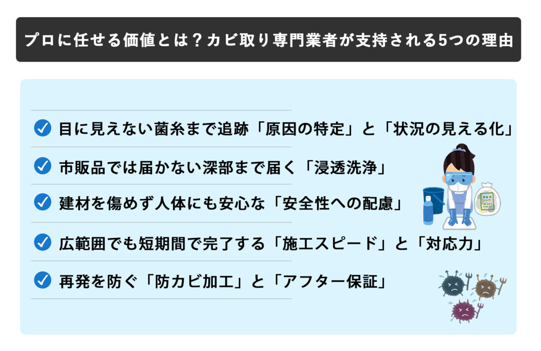 1. プロに任せる価値とは?カビ取り専門業者が支持される5つの理由